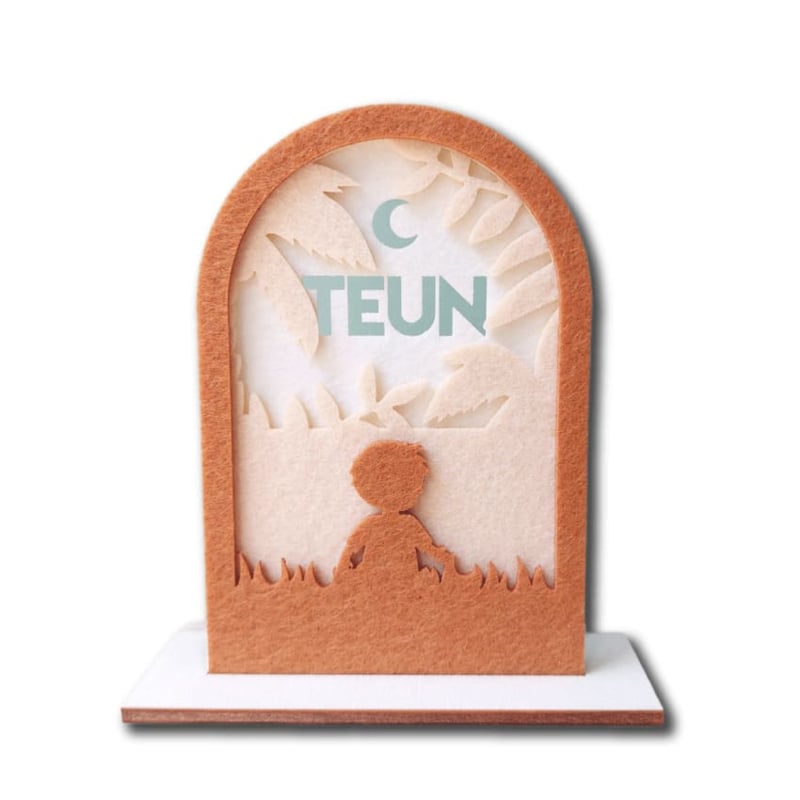 Je kiest zelf de kleuren van het geboortekaartje vilt, het lettertype en de teksten. Wil je er een broer of zus bij in het silhouet? Geen probleem! Alles wordt met de laser strak uitgesneden, dus elk detail komt mooi uit.