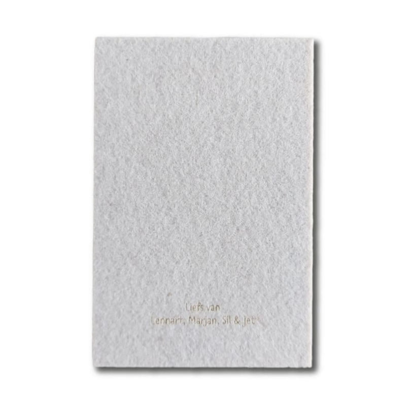 Ik heb dit kaartje ontworpen voor iedereen die met de feestdagen iets origineels wil versturen. Iets wat een glimlach geeft én meteen een plekje krijgt in huis. Het houten lijstje voelt stevig en warm aan. Het vilt maakt het zacht en cosy. En het voertuigje springt er echt uit. Je kiest zelf je kleuren, je tekst en je favoriete figuurtje. Zo maak je jouw kerstwens helemaal eigen.