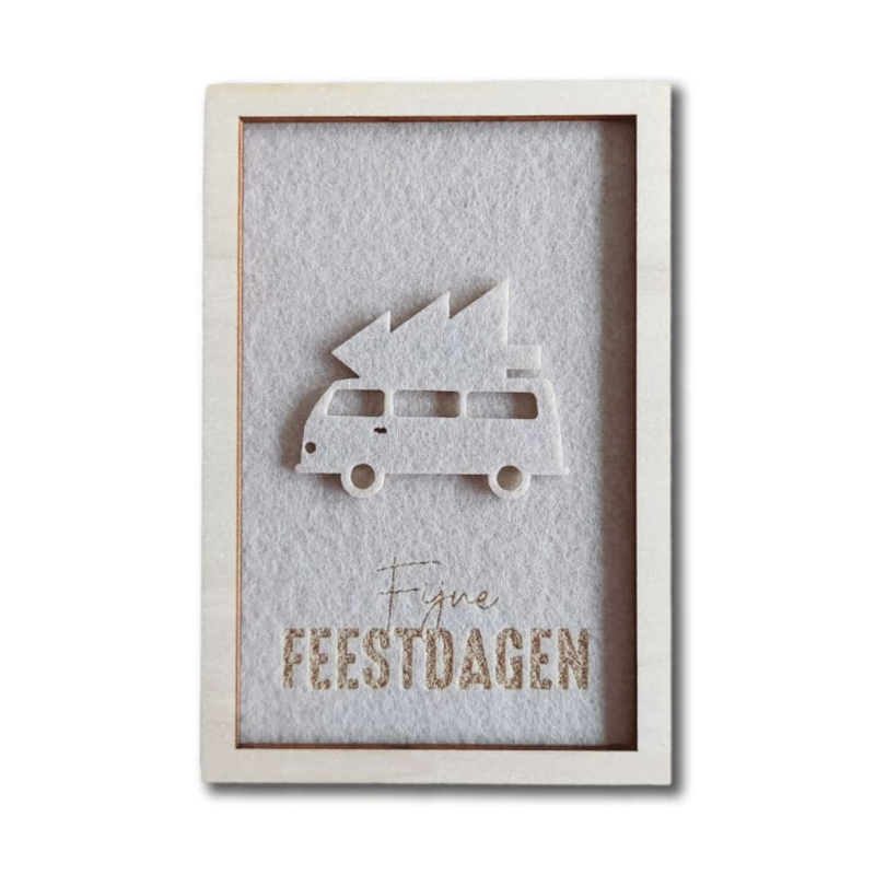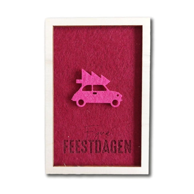 Kerstkaart van vilt en hout - Lijstje Voertuig | Prijs vanaf: