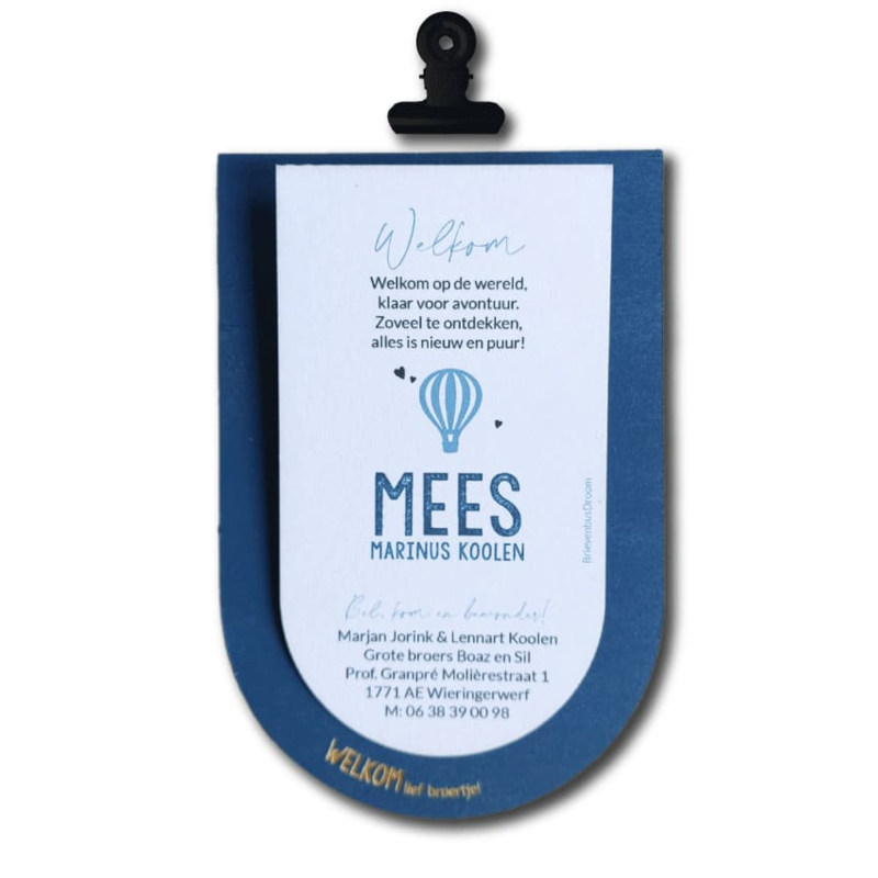 Stoer hout. Een metalen klem. Een luchtballon die eruit springt. 💙 Dit houten geboortekaartje met klembord is stevig, krachtig en net even anders. Een geboortekaartje jongen dat je niet snel vergeet.