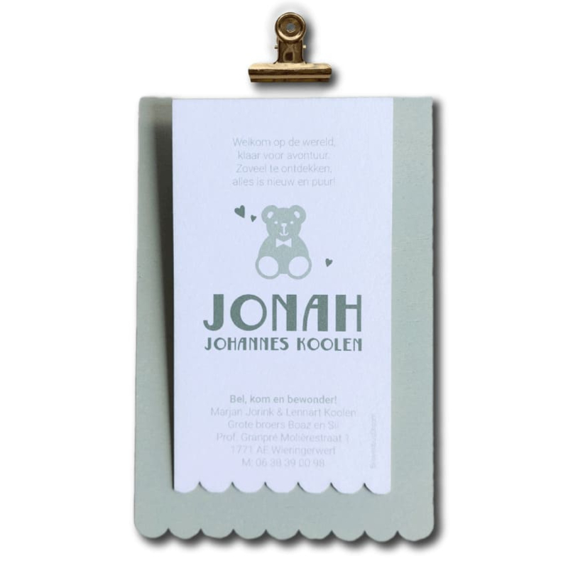 Geboortekaartje van hout - Klembordje Schulprand Beer Jongen